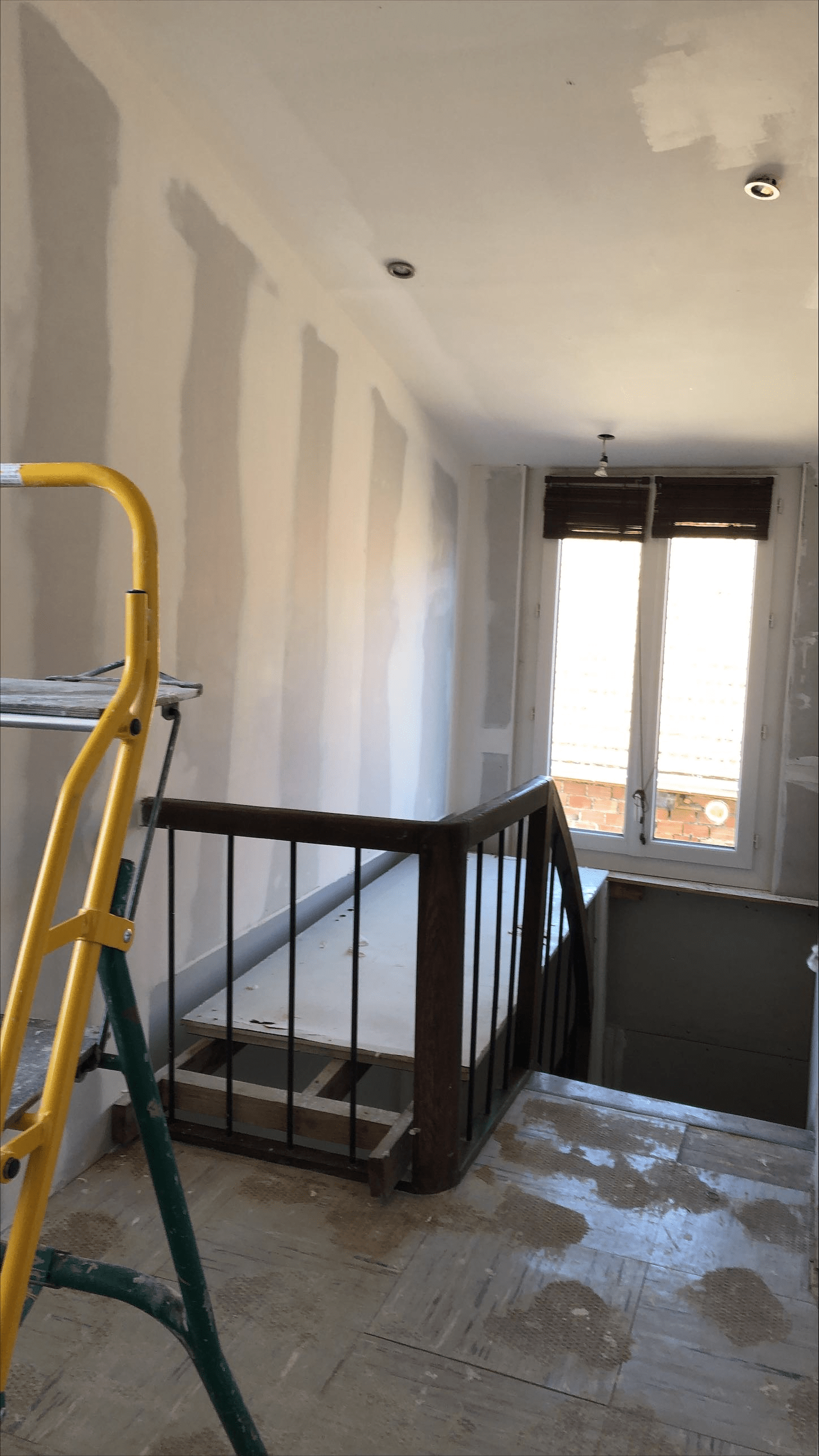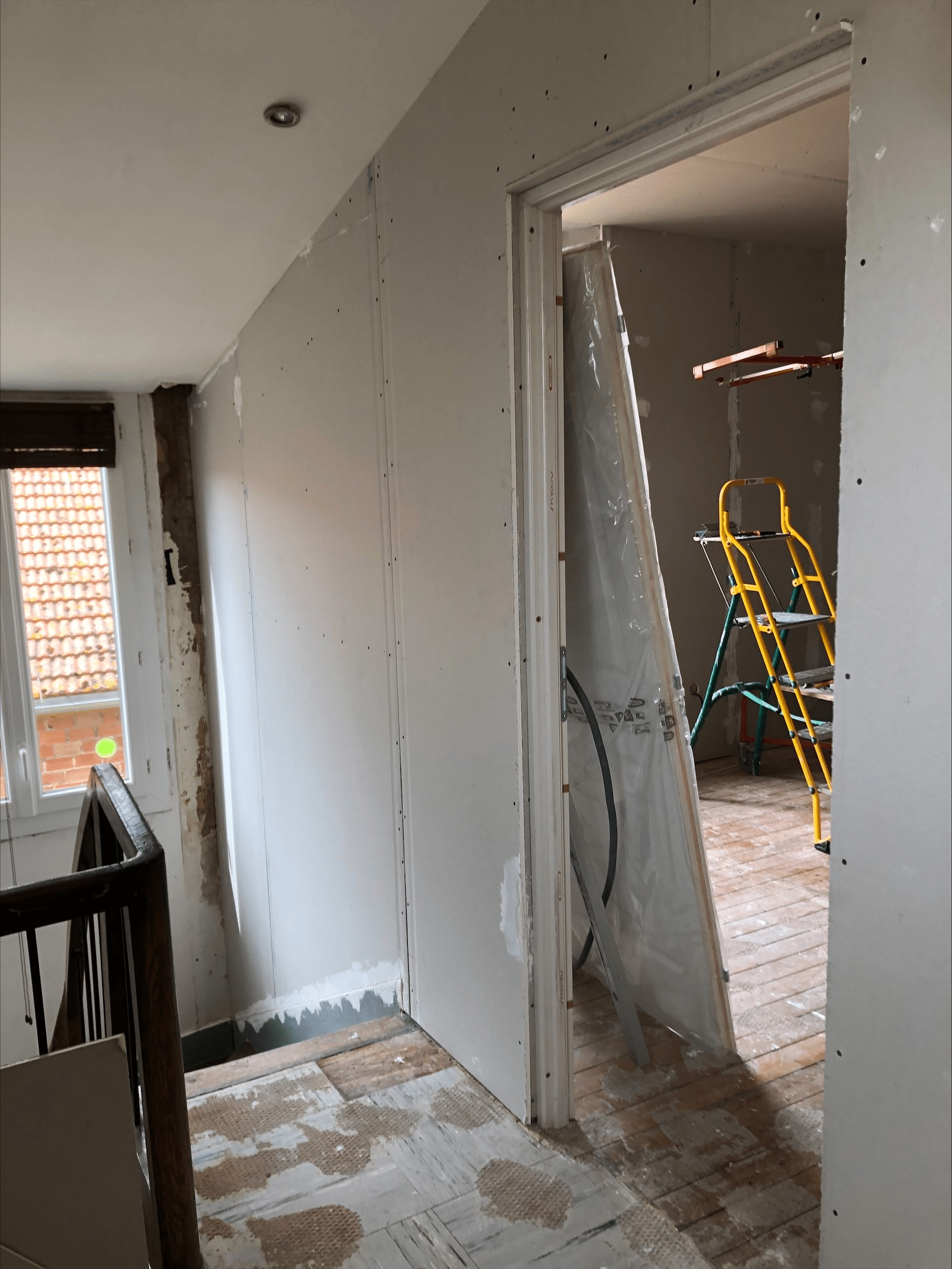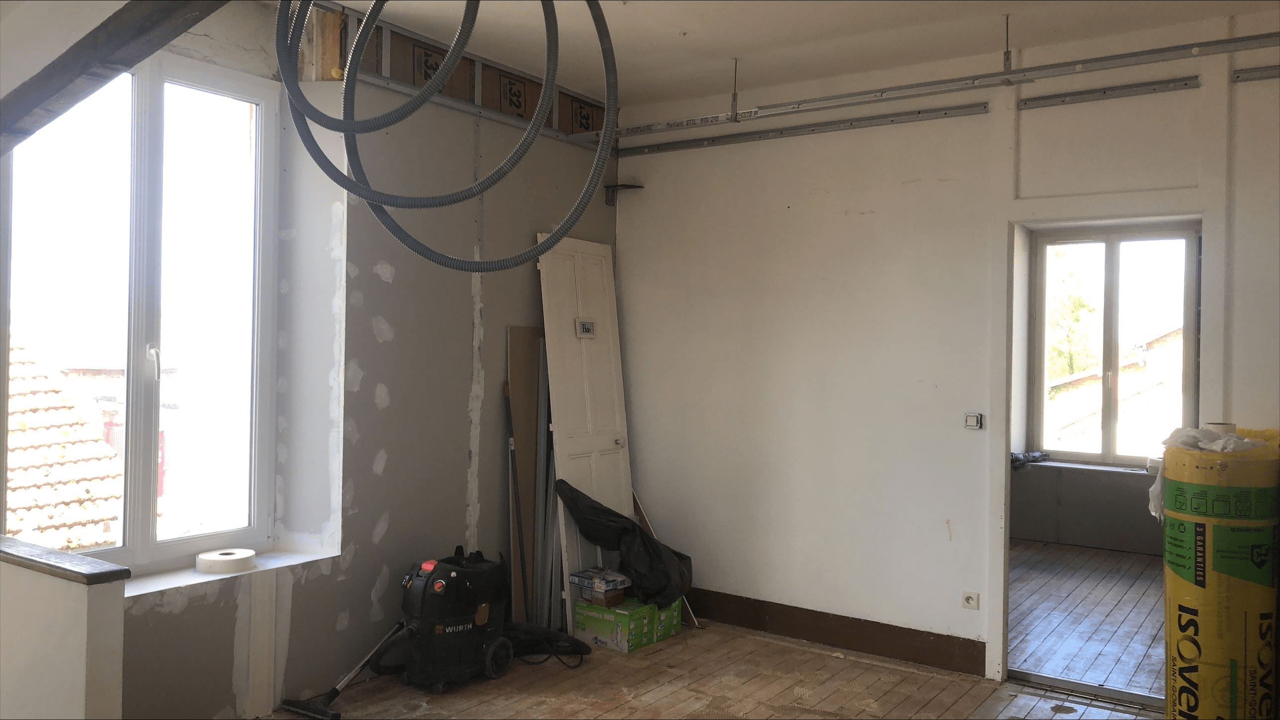 Chantier de rénovation consistant à réaménager l’étage d’une maison individuelle.