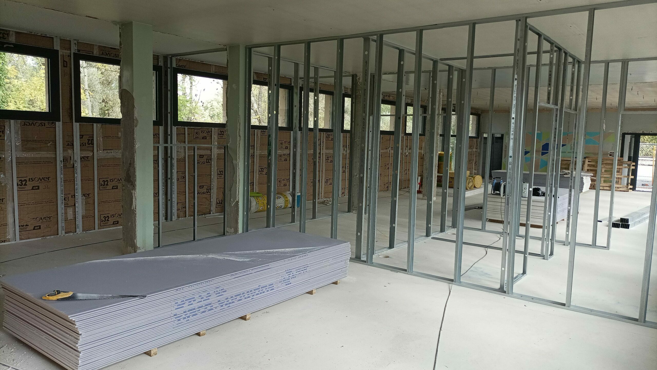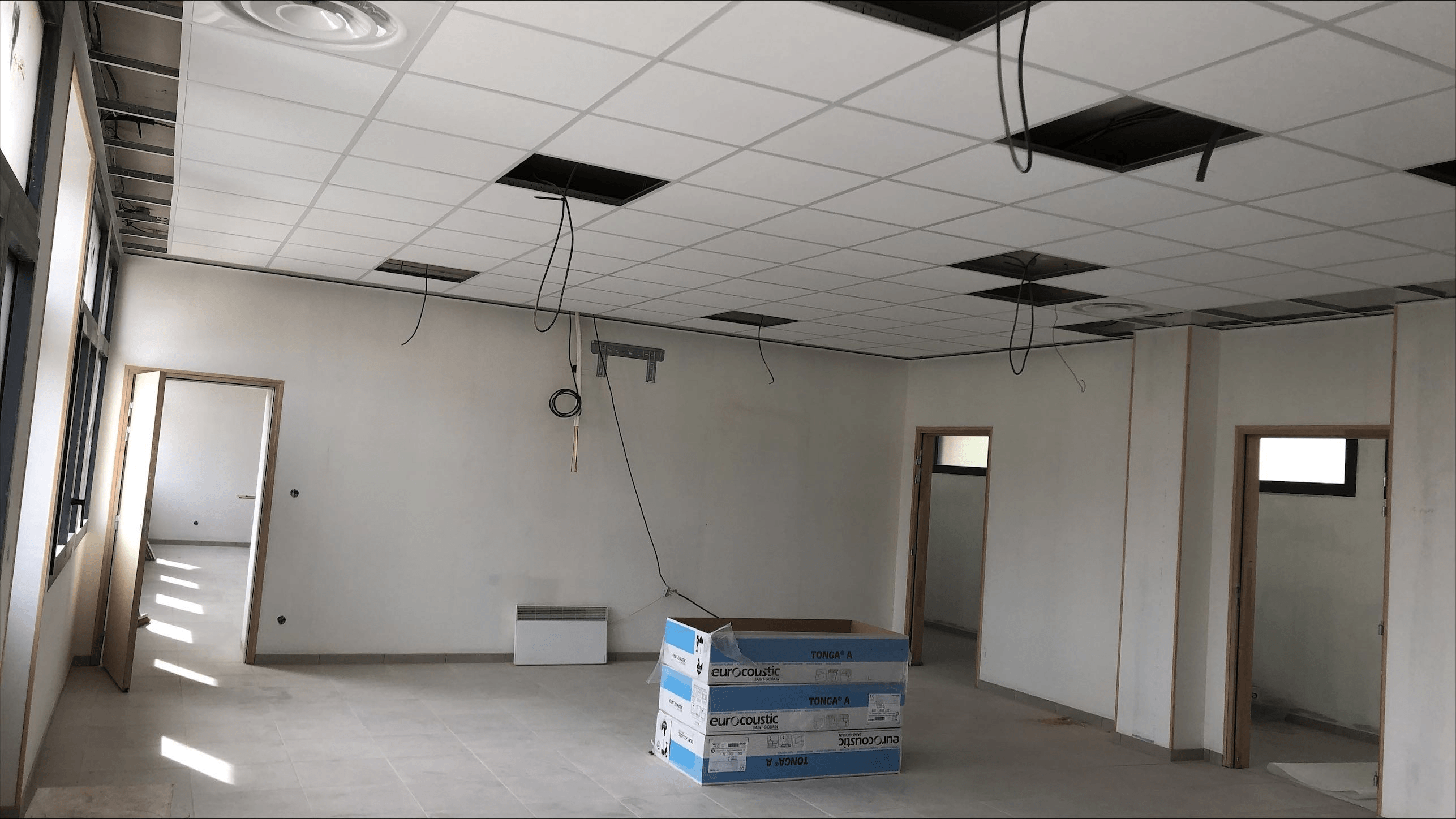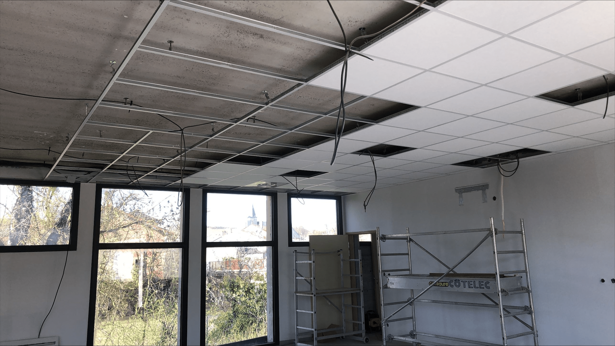 - la mise en œuvre d’un nouveau réseau électrique (prises, éclairage, ventilation, chauffage, système d’alarme et d’évacuation d’urgence)